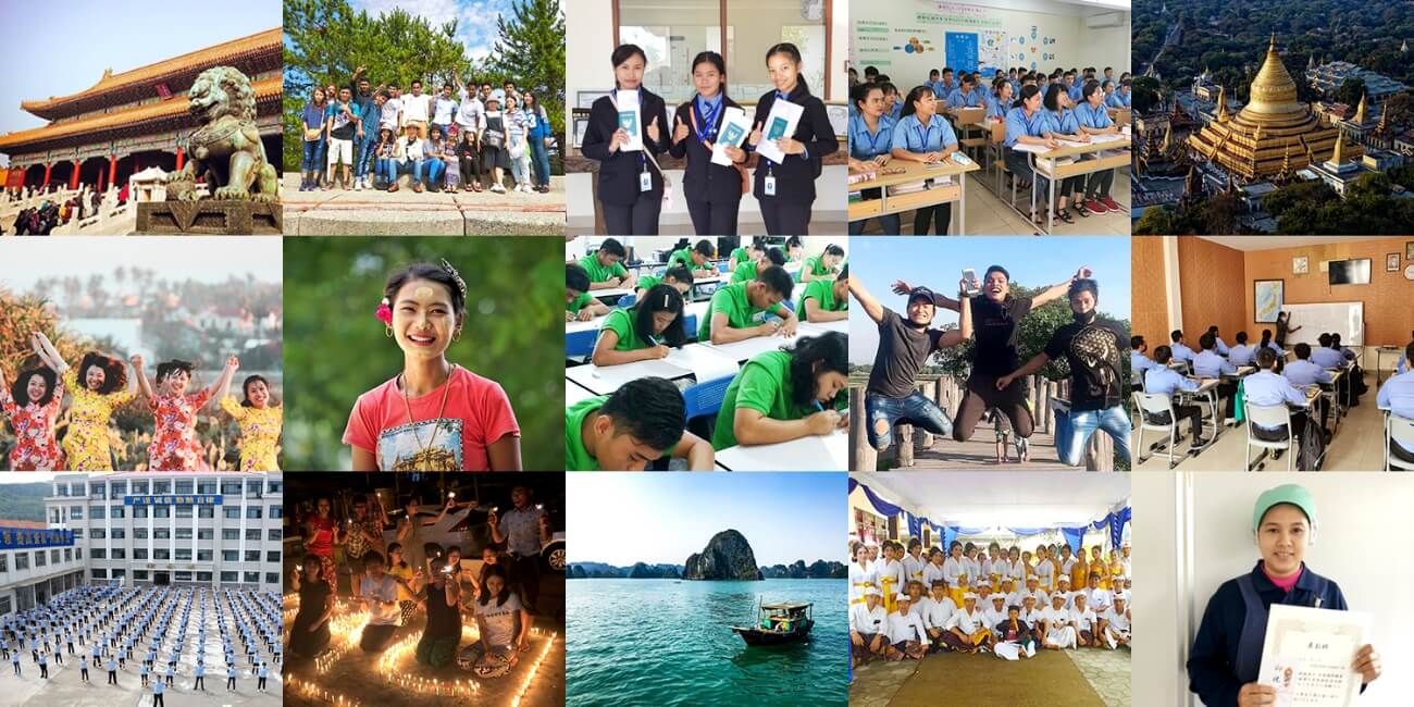実習生が母国で現地講習や採用試験に取り組む姿、また来日後にボランティア活動や地域イベントに参加した際の様子、組合が主催する実習生旅行の思い出などを紹介します。